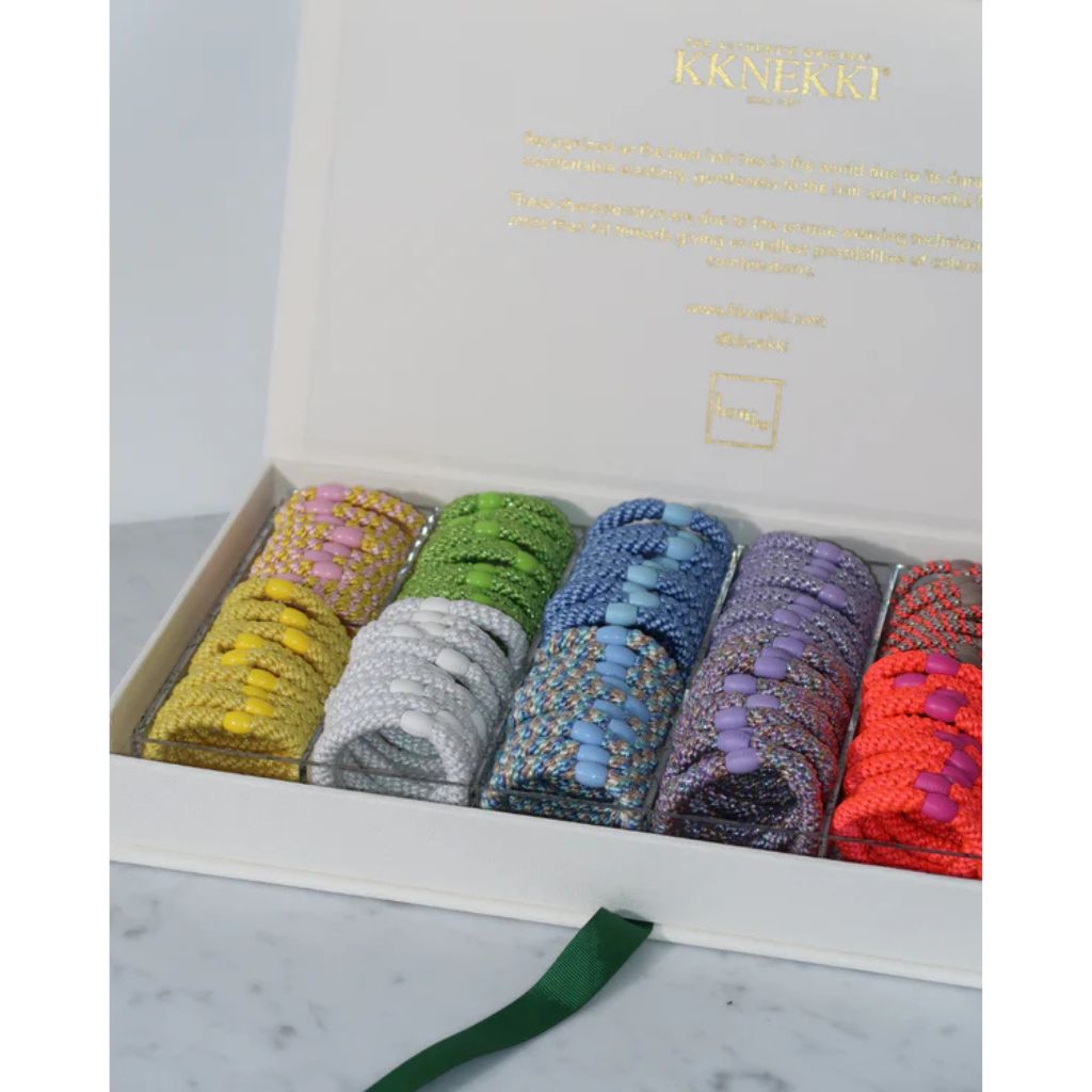 Darüber hinaus sind KKNEKKI-Haargummis nicht nur stylisch, sondern auch besonders nachhaltig, da sie aus recyceltem Kunststoff hergestellt werden.