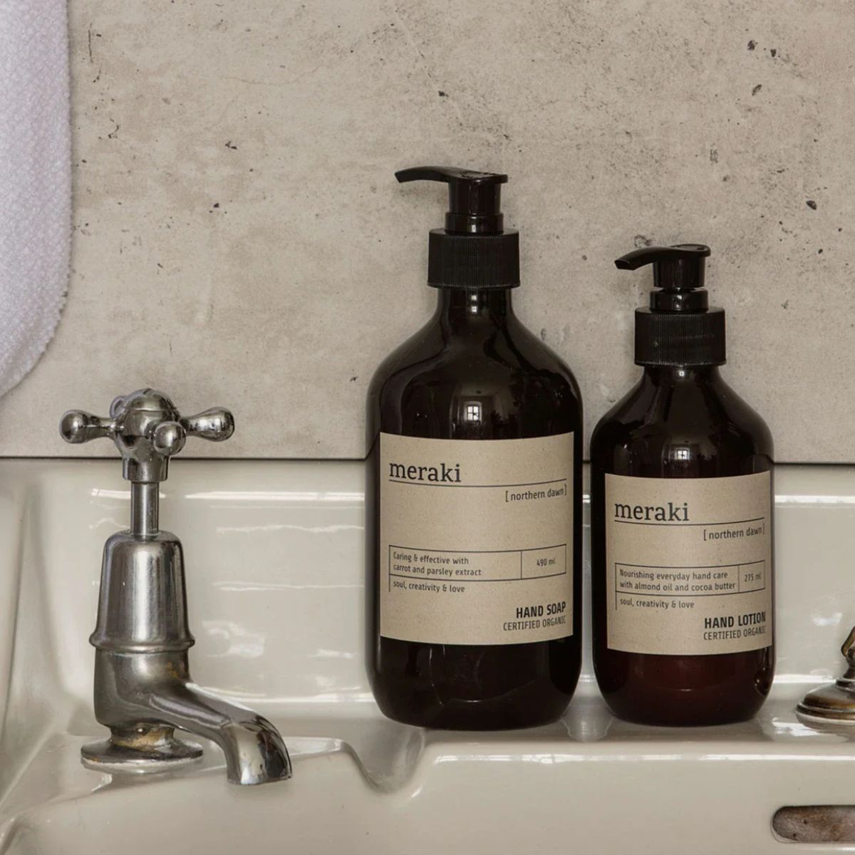 Diese Handlotion von Meraki namens Northern Dawn ist für den alltäglichen Gebrauch geeignet. Sie macht deine Hände weich und geschmeidig, nährt und versorgt sie mit Feuchtigkeit, ohne sich dabei fettig anzufühlen. Mandelöl und Kakaobutter in Bio-Qualität beruhigen deine Hände und hinterlassen ein gut gepflegtes Hautgefühl. Mit dem Bio-Kosmetik-Label ECOCERT Cosmos ausgezeichnet.